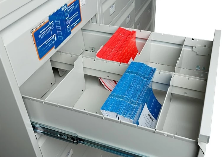 Картотечный шкаф Практик AFC-07 – это исключительно удобное и необходимое в любом современном офисе оборудование для эффективной работы с карточками формата А5. О высоком качестве изделия свидетельствует сертификат ГОСТ 16371-2014, а также декларация о соответствии Техническому регламенту Таможенного союза «О безопасности мебельной продукции».Детали картотеки изготавливаются из качественных сортов стали высокой прочности с расчётом на длительное интенсивное использование. Это доказывают результаты промышленных испытаний: при полноценной загрузке, составляющей 20 кг на ящик, с успехом было проделано более 50 000 открываний. Ящики плавно и без усилий выдвигаются на всю глубину благодаря наличию телескопических направляющих. Для достижения наилучшей устойчивости изделие оснащено антиопрокидывающим устройством, не допускающим возможности выдвинуть два или более ящиков одновременно.